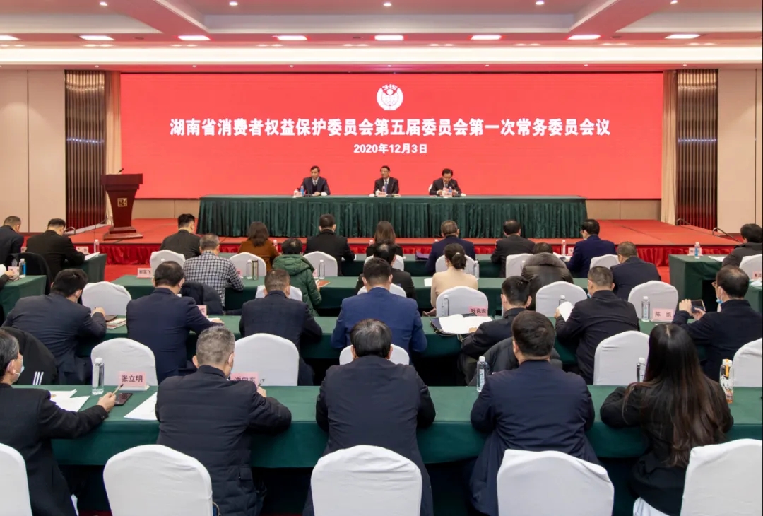 12月3日,湖南省消費者權益保護委員會第五屆委員會第一次常務委員會議在長沙召開,省人大常委會黨組副書記、副主任,省消保委主任黃關春出席會議并講話。省市場監管局黨組書記、局長,省消保委常務副主任向曙光主持會議。省市場監管局副局長、省消保委副主任李沐出席會議。90名新當選省消保委常務委員參加會議。