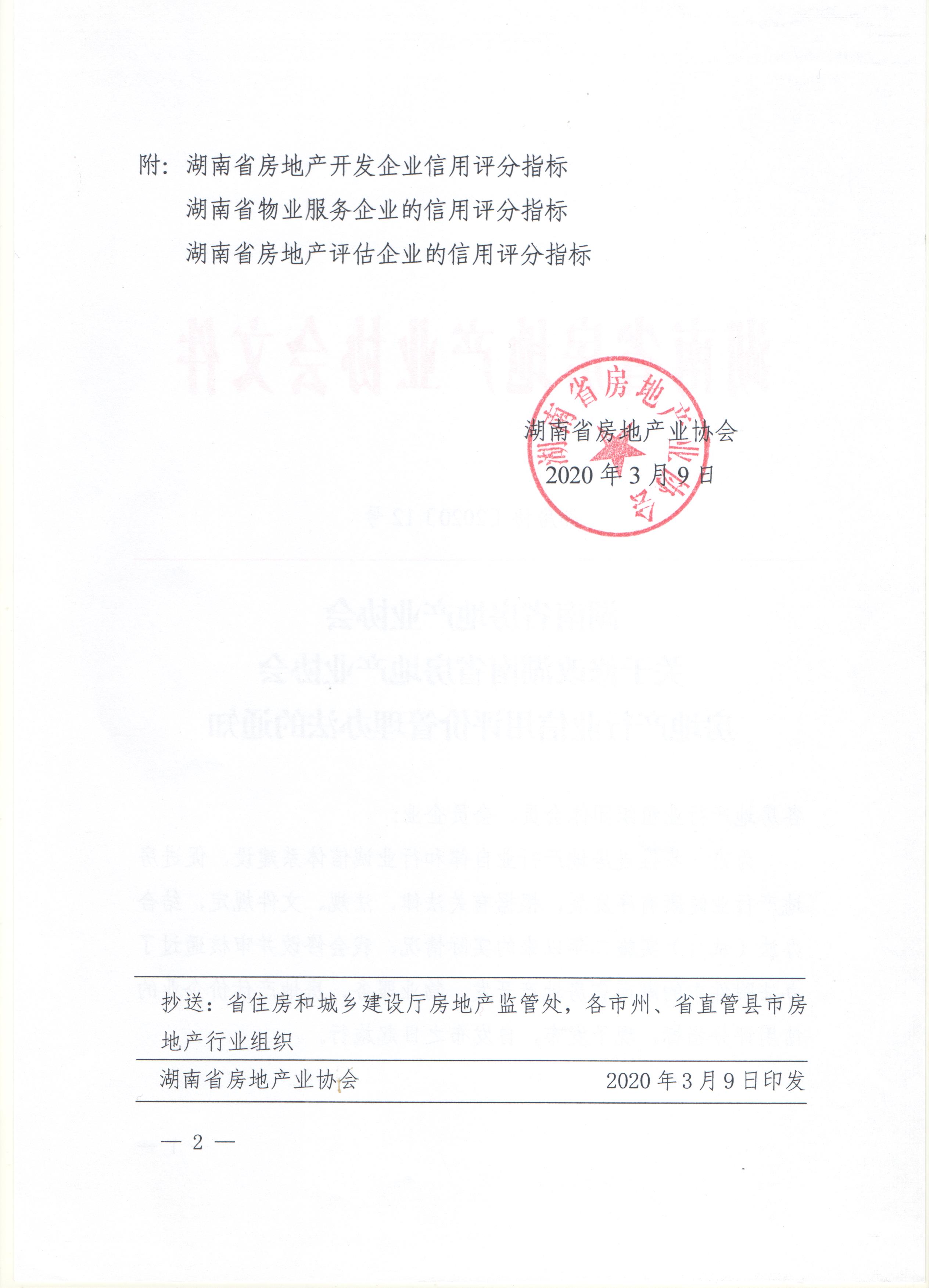 為進(jìn)一步推進(jìn)房地產(chǎn)行業(yè)自律和行業(yè)誠信體系建設(shè),促進(jìn)房地產(chǎn)行業(yè)健康有序發(fā)展,根據(jù)有關(guān)法律、法規(guī)、文件規(guī)定,結(jié)合辦法(試行)實施二年以來的實際情況,我會修改并審核通過了辦法附件中的湖南省房地產(chǎn)開發(fā)、物業(yè)服務(wù)、房地產(chǎn)估價企業(yè)的信用評分指標(biāo),現(xiàn)予發(fā)布,自發(fā)布之日起施行。
