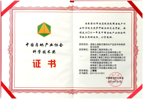 本次論壇上,對“2021年度中國房地產業協會科學技術獎授獎項目”進行了現場頒獎。本年度共評出授獎項目20項,包括一等獎5項,二等獎7項,三等獎8項。其中,我會會長單位湖南建工集團有限公司的項目“混凝土裝配式模塊化產品技術體系研發與應用”榮獲二等獎。?