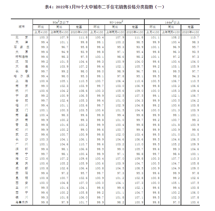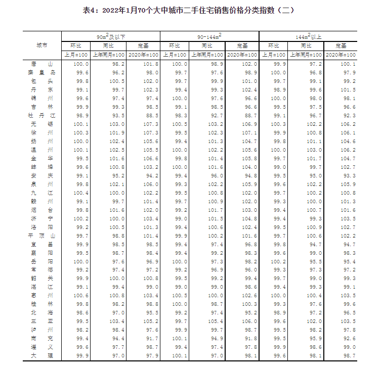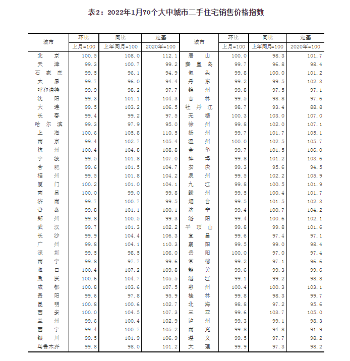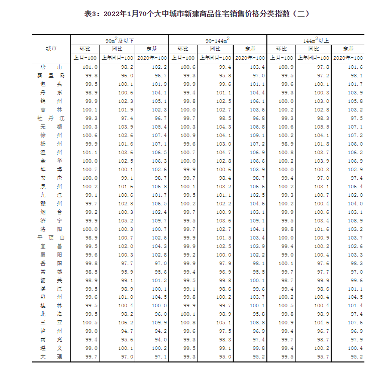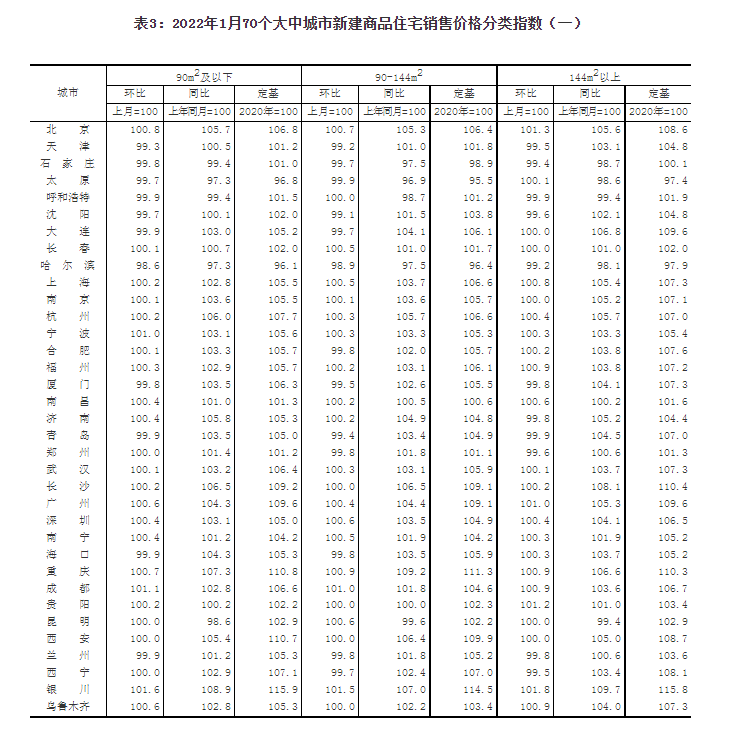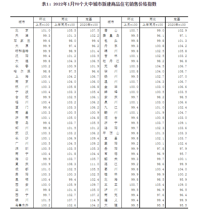 2022年1月份70個(gè)大中城市商品住宅銷售價(jià)格變動(dòng)情況
