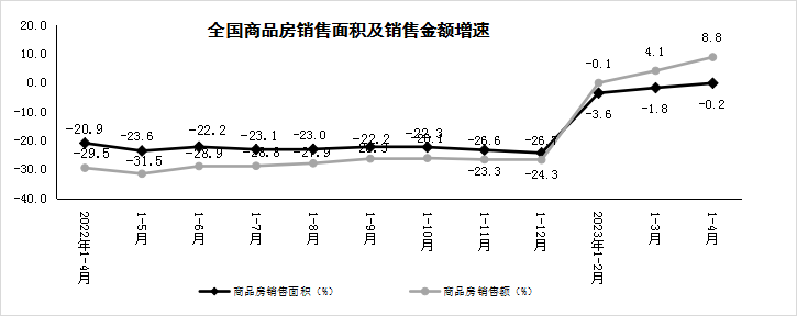 國家統計局:1-4月商品房銷售額同比增長8.8%