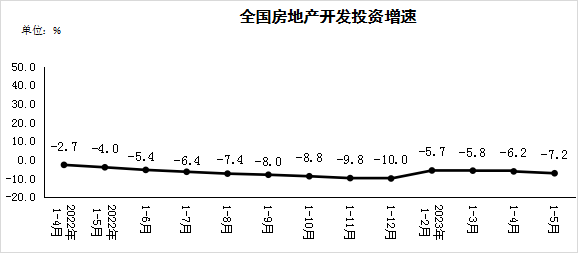 1-5月全國房地產開發投資同比下降7.2%