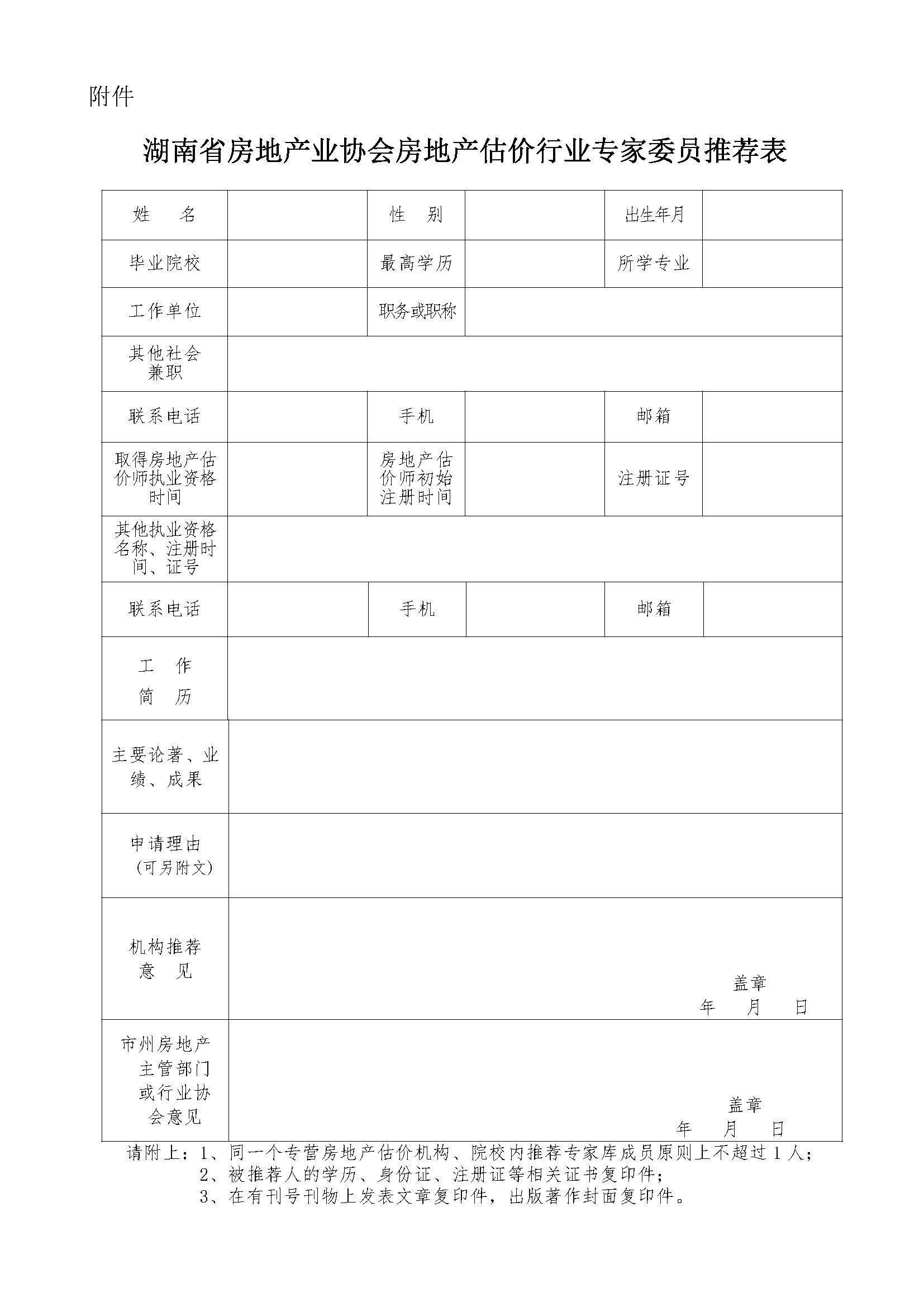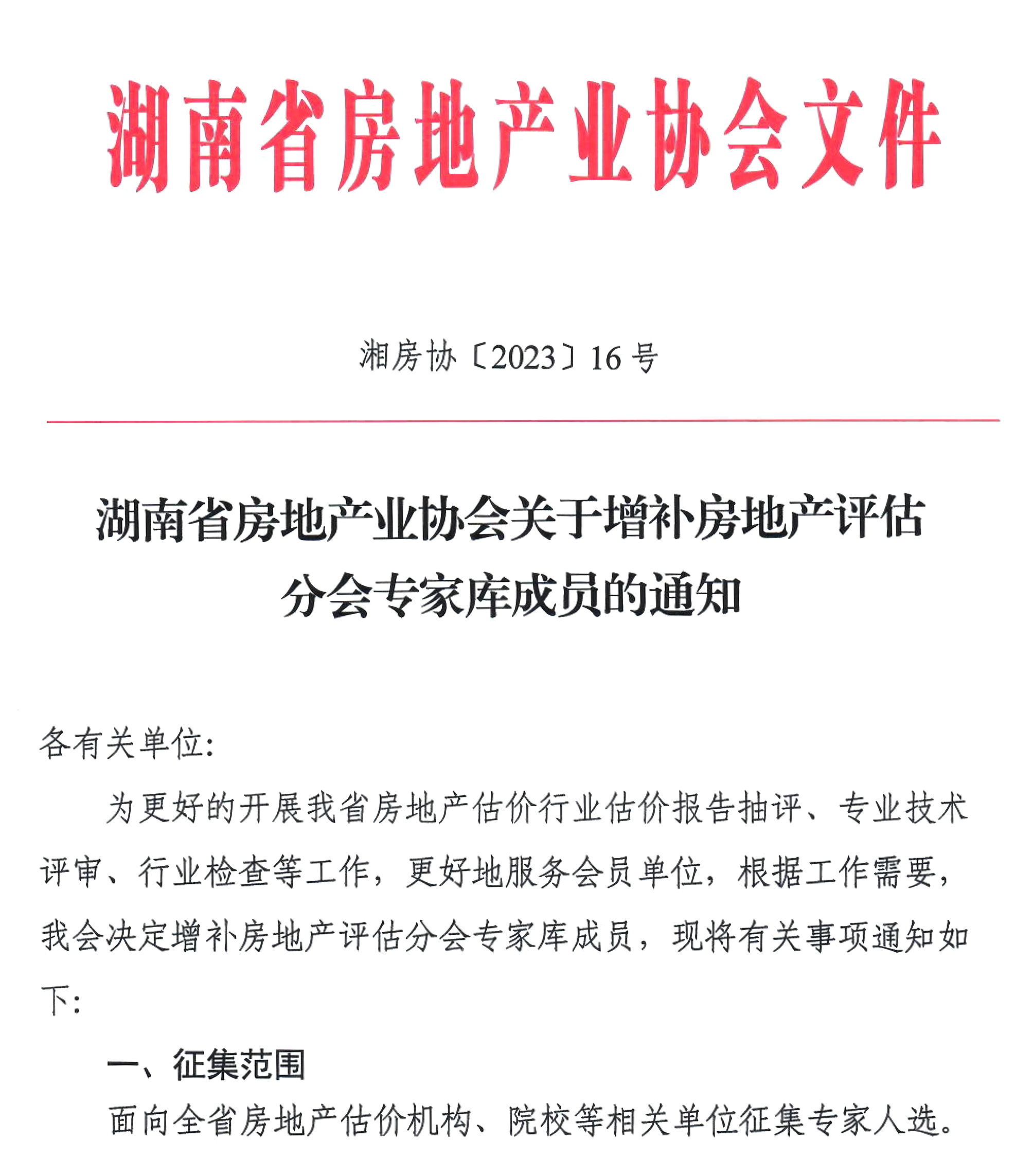 湖南省房地產業協會關于增補房地產評估分會專家庫成員的通知