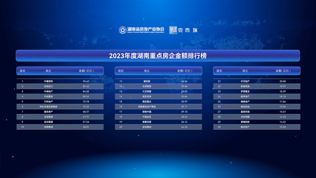 會(huì)上發(fā)布了由湖南省房地產(chǎn)業(yè)協(xié)會(huì)指導(dǎo),克而瑞整理的《2023年湖南房企銷售榜單》,同時(shí)還發(fā)布了湖南本土房企銷售榜TOP30,長(zhǎng)沙房企銷售榜TOP30以及長(zhǎng)沙商品住宅項(xiàng)目榜TOP30。數(shù)據(jù)覆蓋全省14個(gè)地州市,信息全面,為行業(yè)提供了很好的參考價(jià)值和指導(dǎo)價(jià)值。