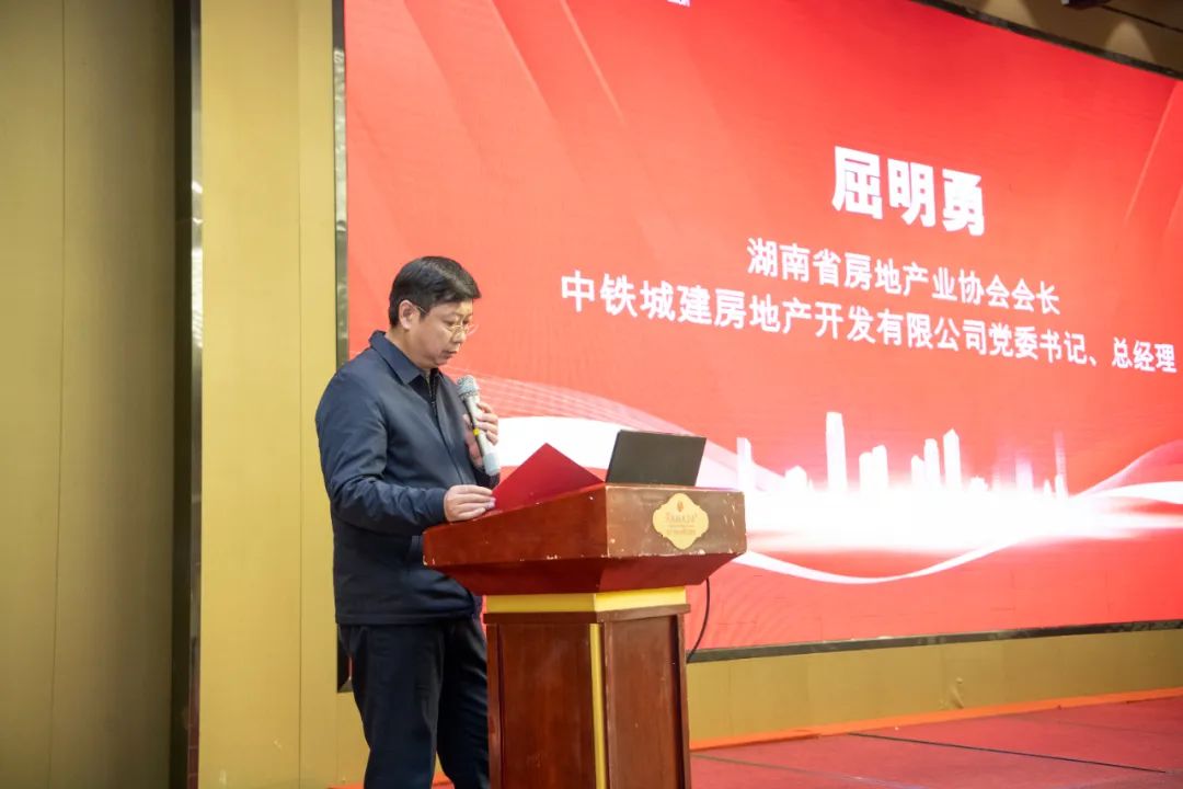 (湖南省房地產(chǎn)業(yè)協(xié)會(huì)會(huì)長(zhǎng)、中鐵城建房地產(chǎn)開發(fā)有限公司黨委書記、總經(jīng)理 屈明勇)