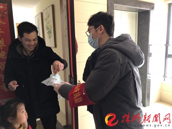 (志愿服務(wù)隊為業(yè)主派送口罩)
