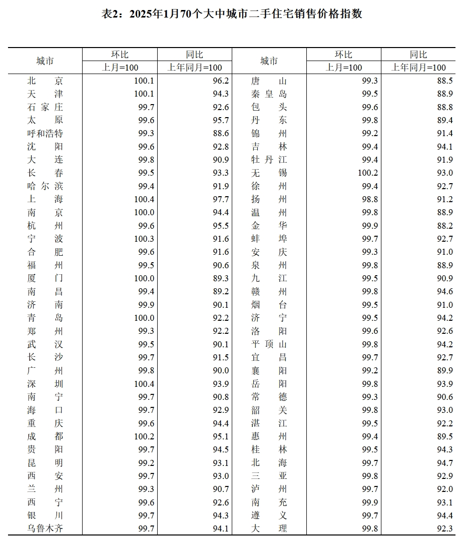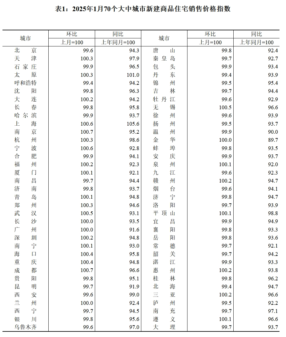 國家統(tǒng)計局今日發(fā)布的《70個大中城市商品住宅銷售價格變動情況》顯示,2025年1月份70個大中城市中新建商品住宅和二手住宅銷售價格環(huán)比上漲城市分別有24個和7個,比上月分別增加1個和減少2個;同比上漲城市分別有2個和0個,與上月均持平。