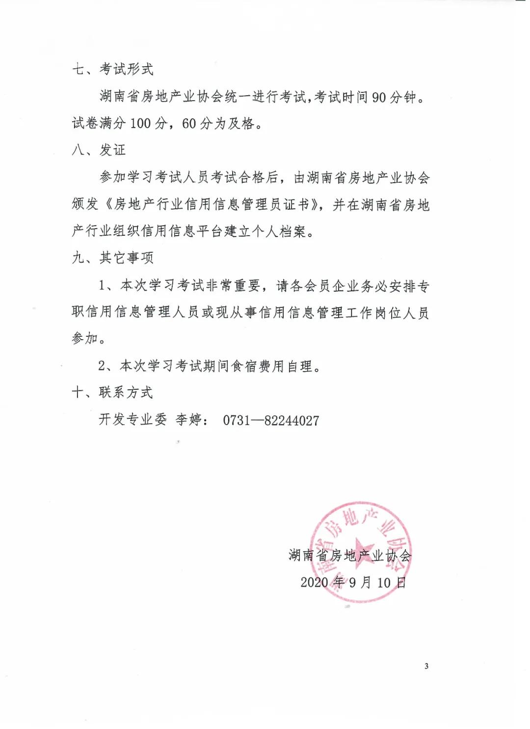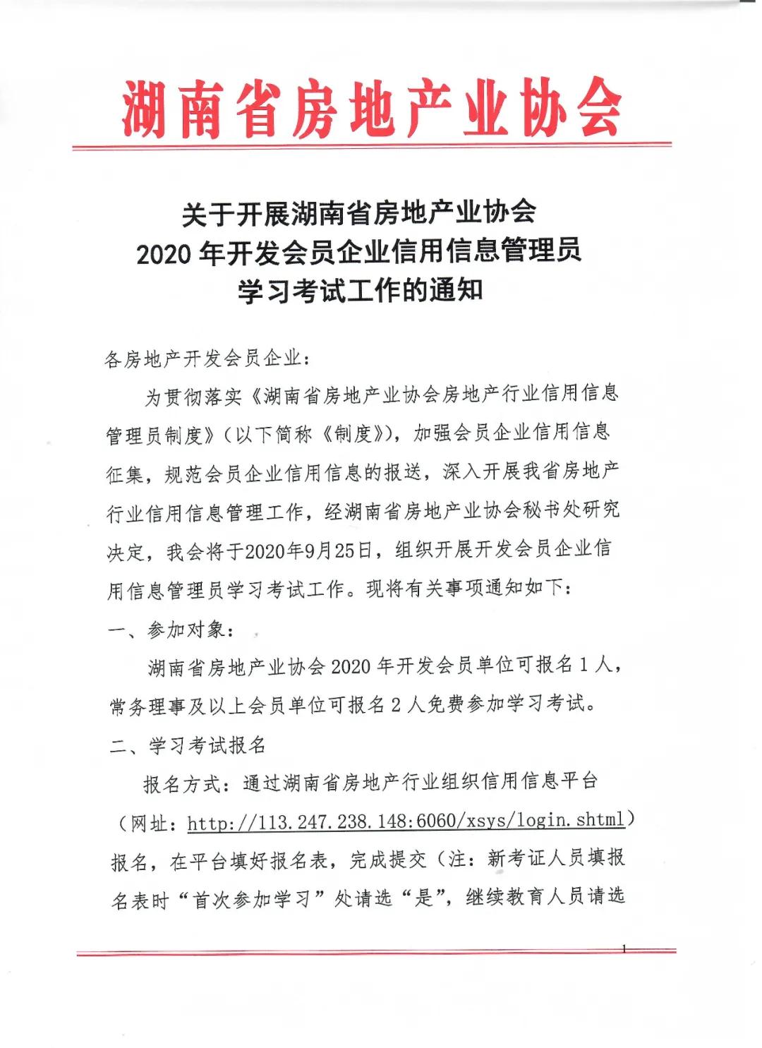 關于開展湖南省房地產業協會 2020年開發會員企業信用信息管理員學習考試工作的通知