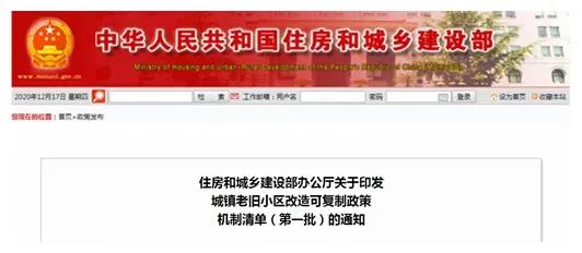 住房和城鄉(xiāng)建設(shè)部印發(fā)城鎮(zhèn)老舊小區(qū)改造可復(fù)制政策機制清單(第一批)