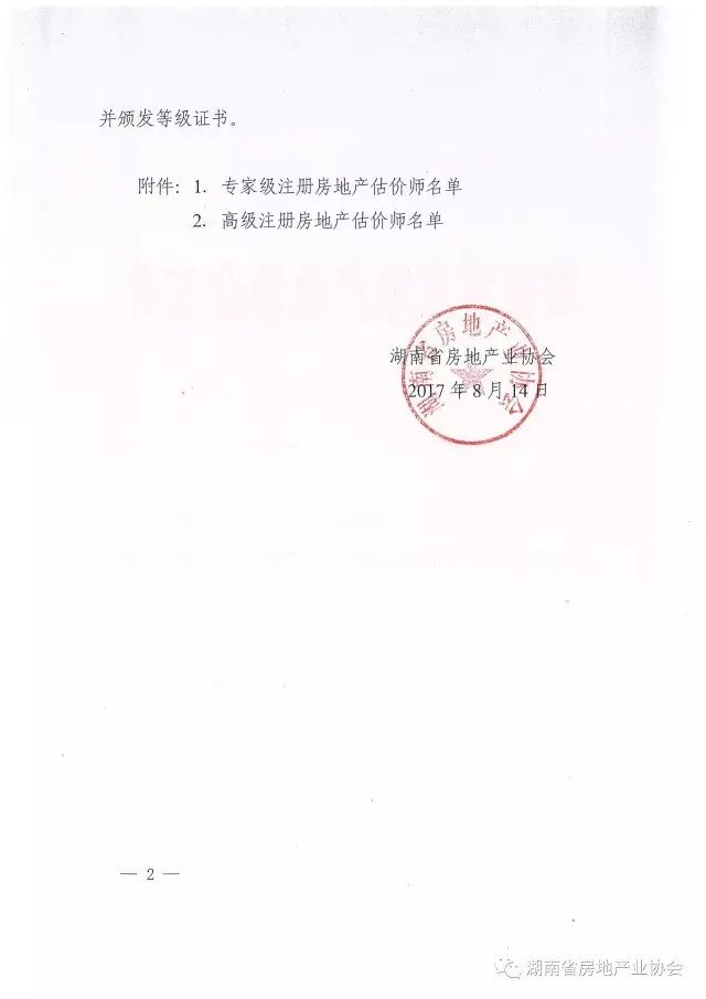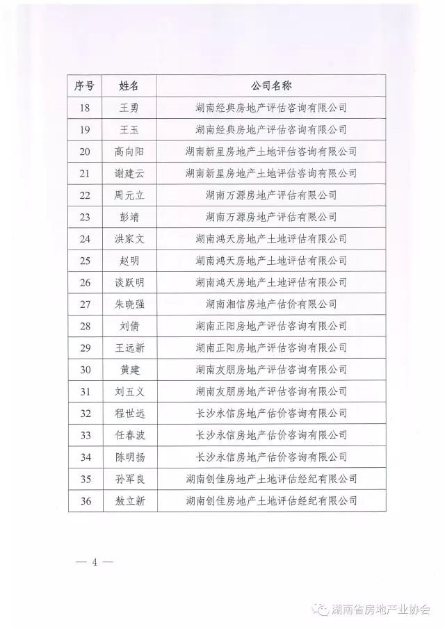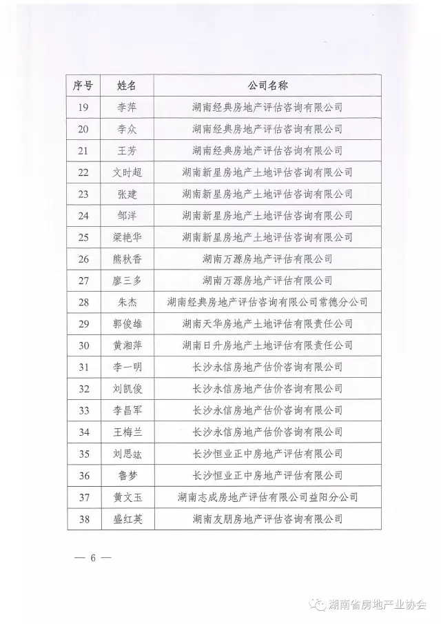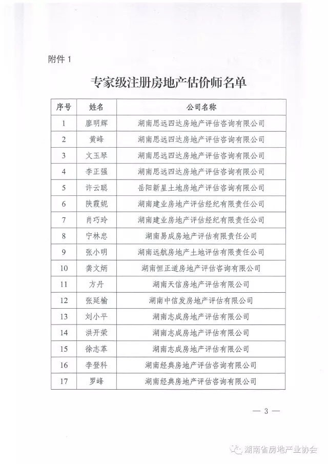 湖南省房地產業協會關于公布湖南省注冊房地產估價師執業等級評定結果的通知