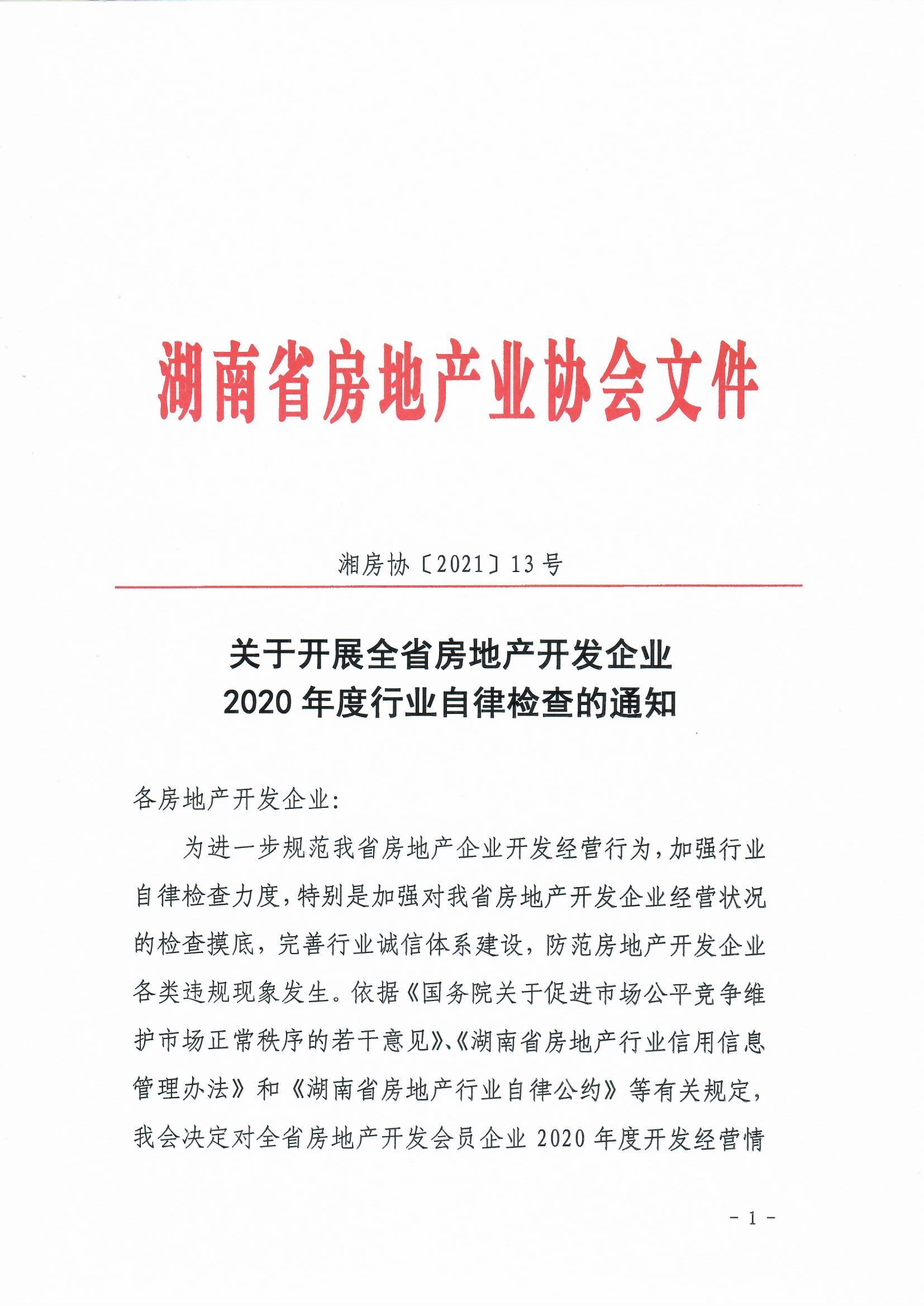 關于開展全省房地產開發企業2020年度行業自律檢查的通知