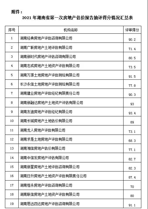 2021年湖南省第一次房地產(chǎn)估價(jià)報(bào)告抽評(píng)得分情況公示