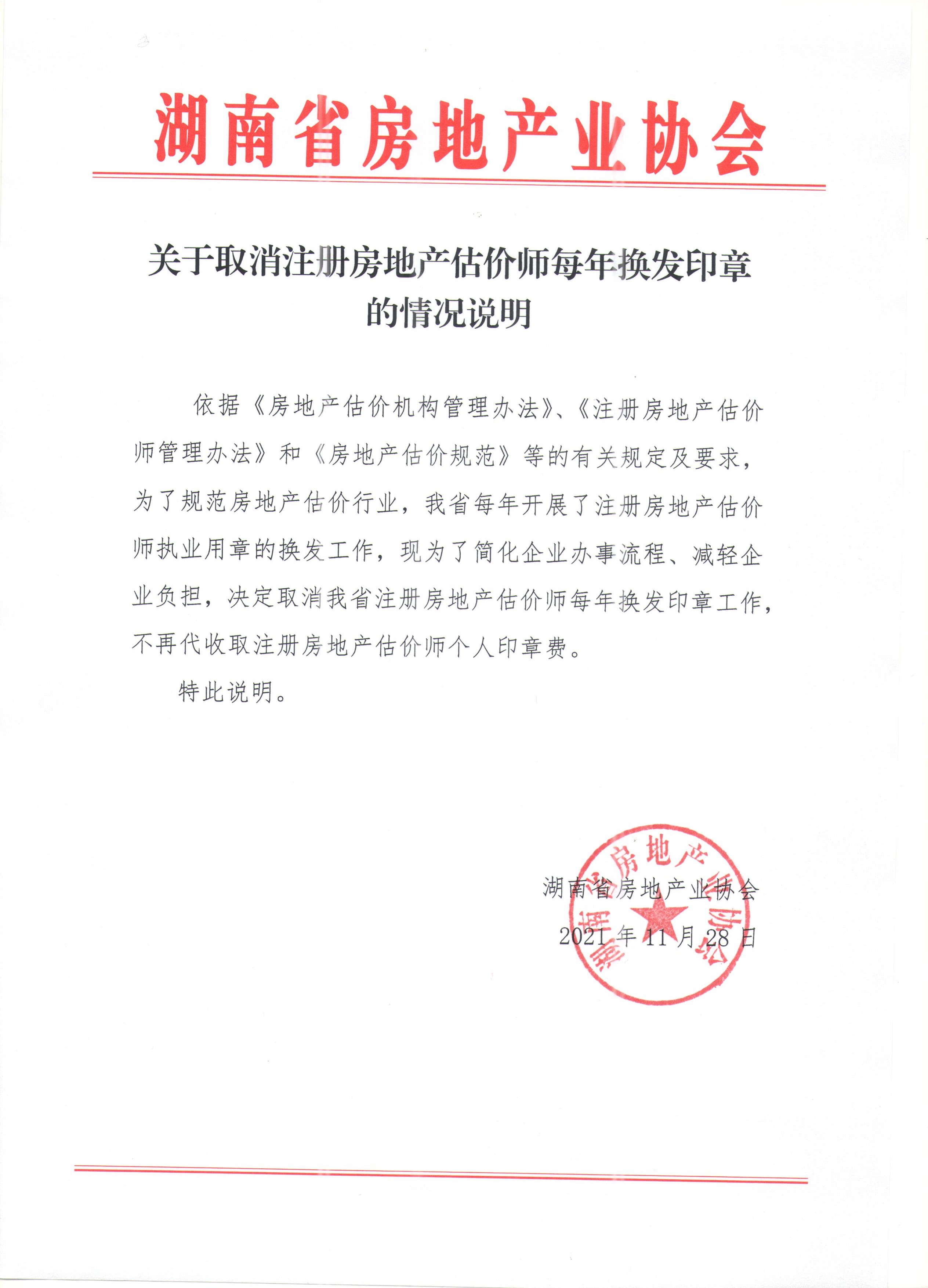 關(guān)于取消注冊(cè)房地產(chǎn)估價(jià)師每年換發(fā)印章的情況說(shuō)明