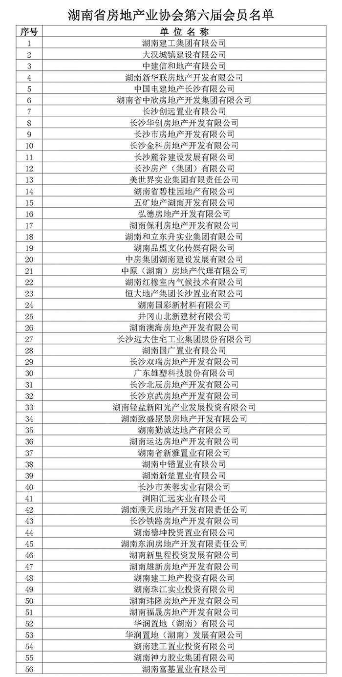 按照湖南省民政廳《關于印發全省性行業協會商會負責人任職管理辦法(試行)的通知》(湘民發〔2016〕13號)規定,依據《湖南省房地產業協會章程》,現將湖南省房地產業協會第六屆會員名單予以公示。