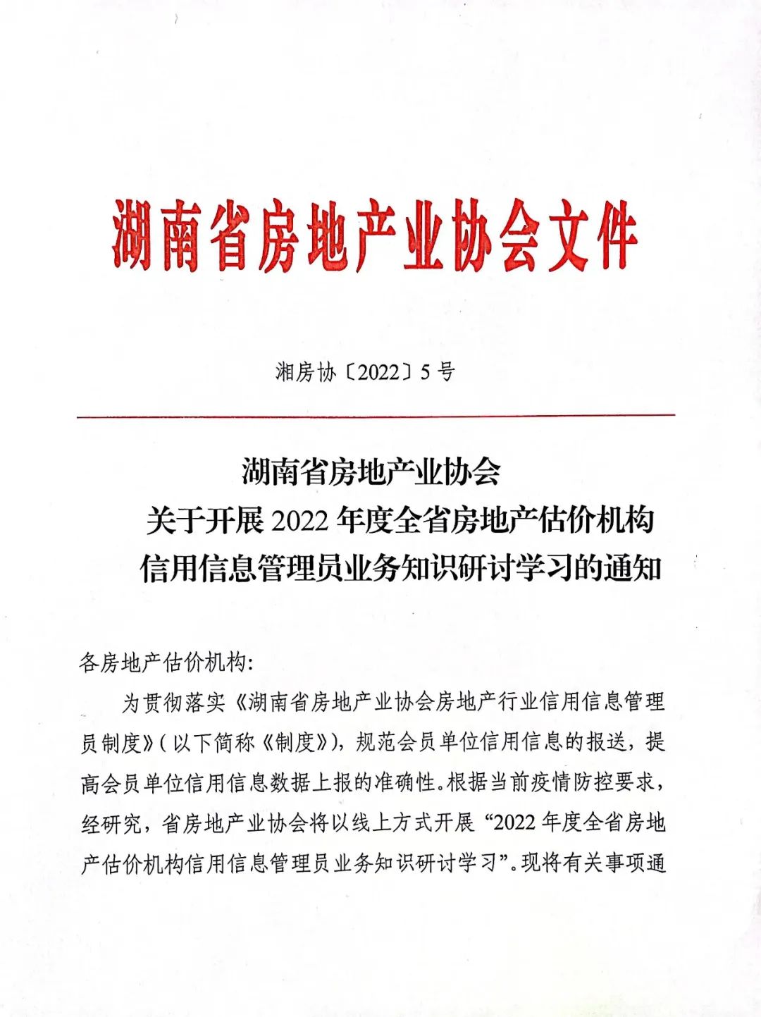 關于開展2022年度全省房地產(chǎn)估價機構信用信息管理員業(yè)務知識研討學習的通知