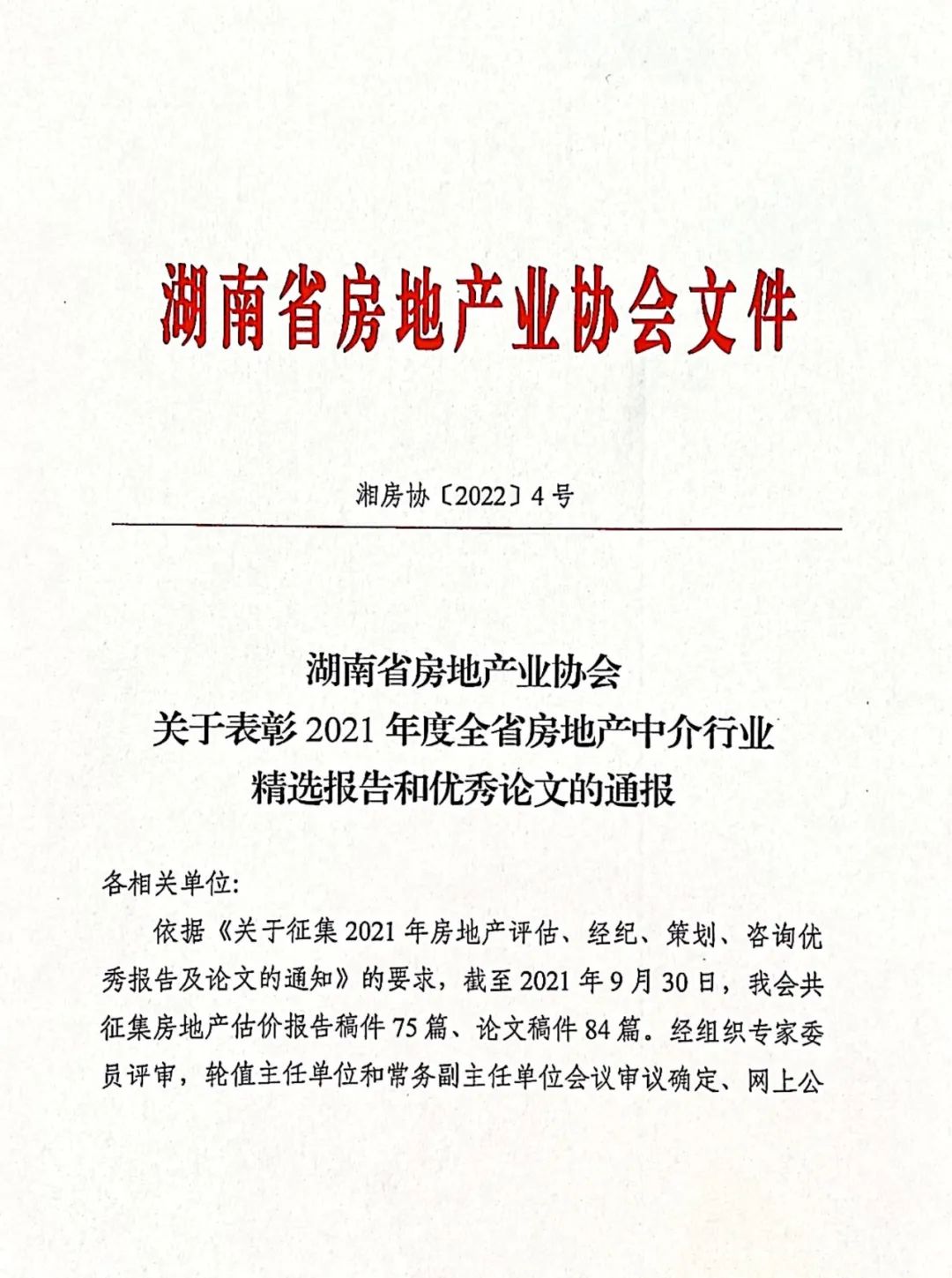 關(guān)于表彰2021年度全省房地產(chǎn)中介行業(yè)精選報(bào)告和優(yōu)秀論文的通報(bào)