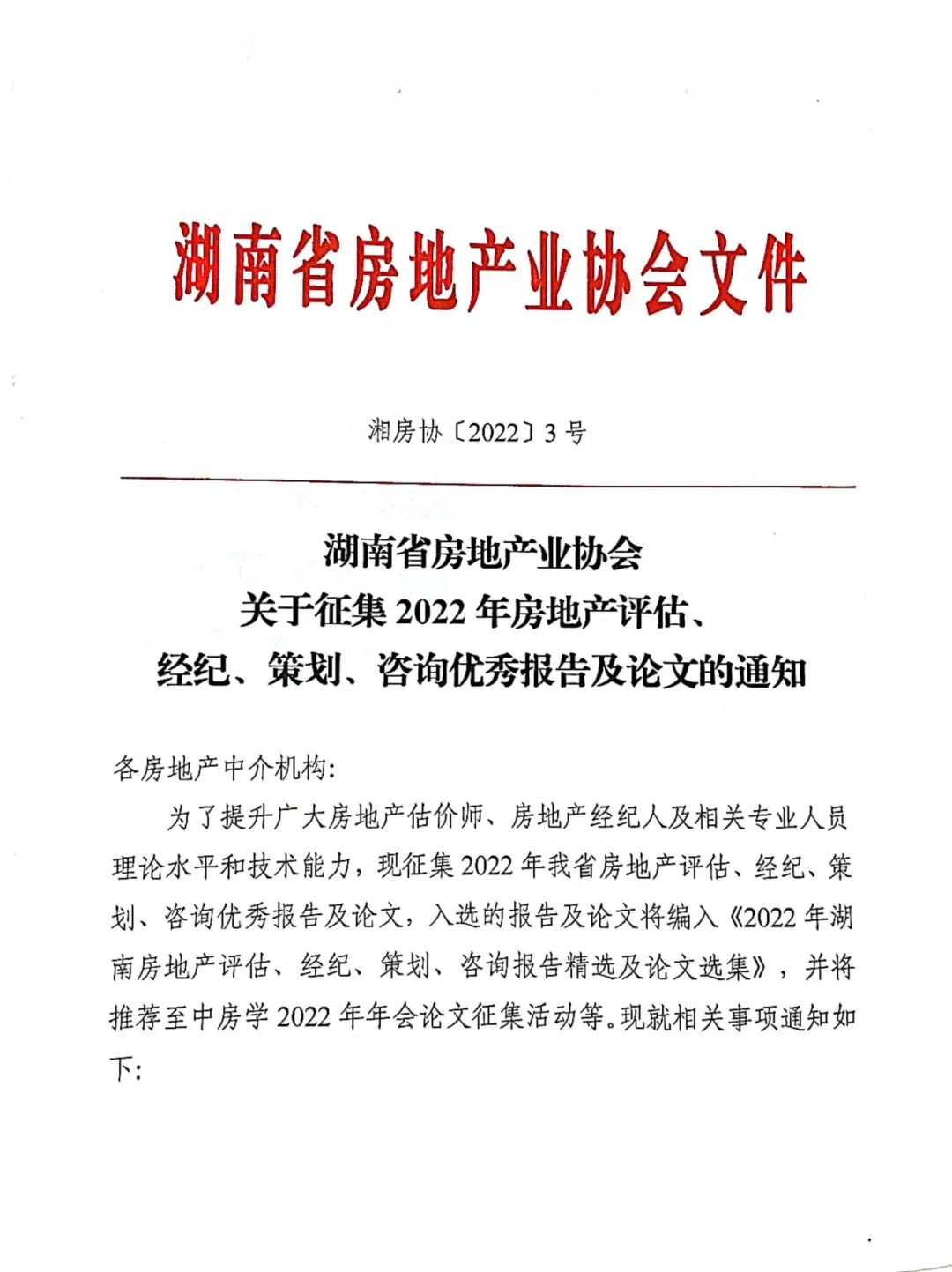 關于征集2022年房地產評估、經紀、策劃、咨詢優秀報告及論文的通知