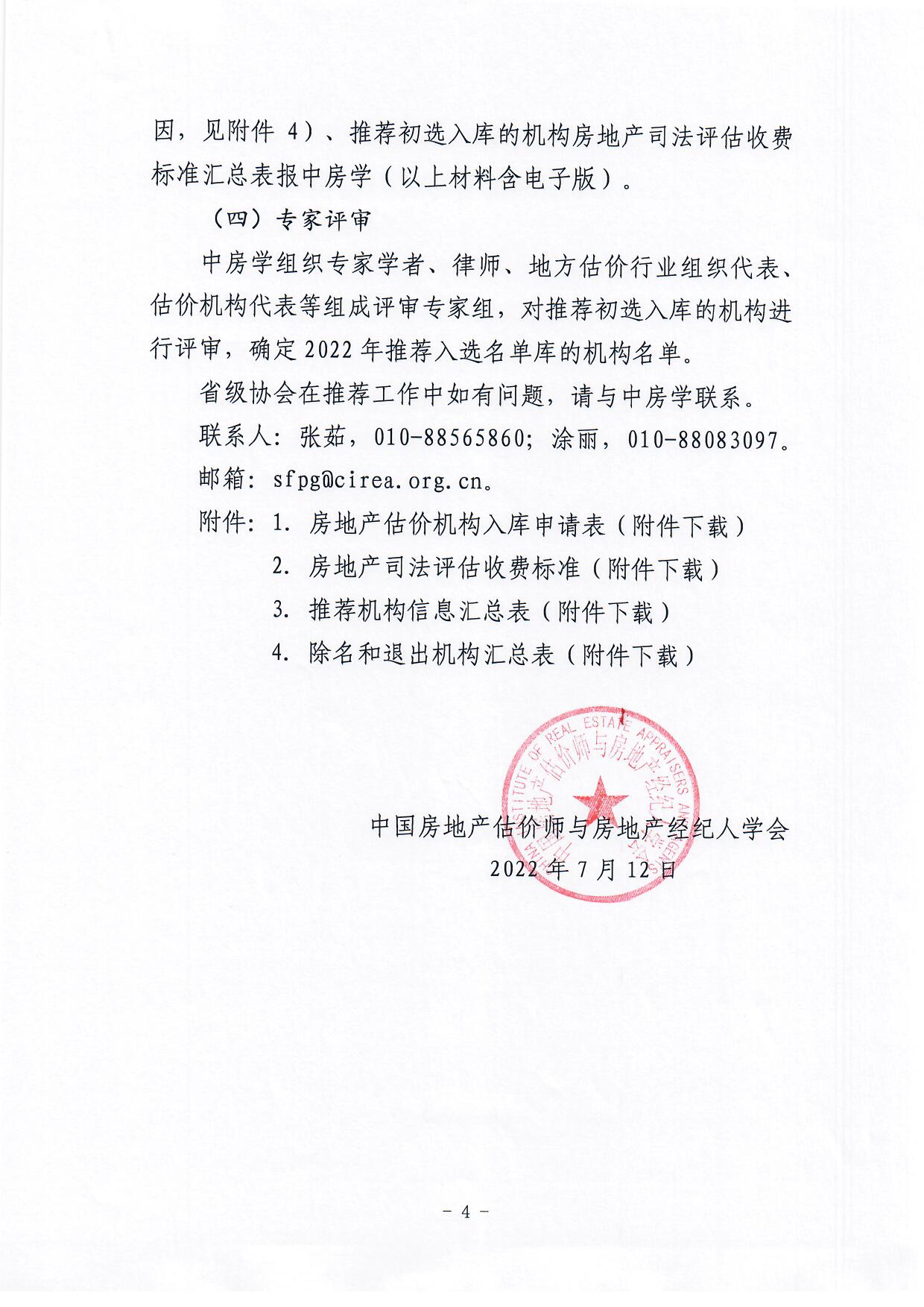 為配合中房學(xué)做好司法評估業(yè)務(wù)的房地產(chǎn)估價(jià)機(jī)構(gòu)名單庫推選工作,現(xiàn)將中國房地產(chǎn)估價(jià)師與房地產(chǎn)經(jīng)紀(jì)人學(xué)會《關(guān)于推薦2022年入選人民法院涉執(zhí)財(cái)產(chǎn)處置司法評估機(jī)構(gòu)名單庫的通知》(中房學(xué)〔2022〕26號),轉(zhuǎn)發(fā)給各有關(guān)單位并將有關(guān)事項(xiàng)補(bǔ)充如下: