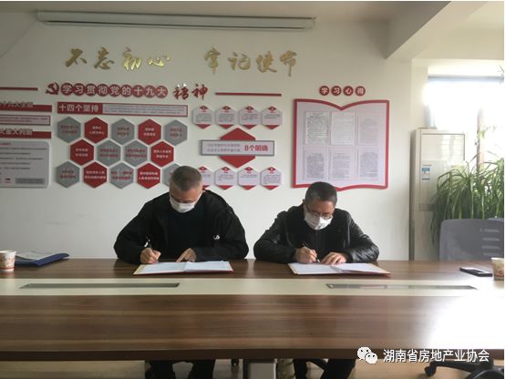3月5日上午,湖南省房地產業協會、湖南省守合同重信用企業協會共享共建合作簽約儀式在湖南省房地產業協會三樓會議室順利舉行。湖南省房地產業協會黨支部書記、常務副會長兼秘書長宋瀧,湖南省守合同重信用企業協會會長談毅出席簽約儀式并代表雙方進行了簽約,湖南省房地產業協會物業管理專業委員會秘書長肖斌斌,湖南省守合同重信用企業協會秘書長陳娟、副秘書長徐倩等相關同志參加了此次簽約儀式。
