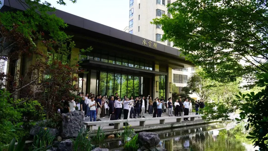 項目園林以“一池、三山、三舍、八境”為設計脈絡,融合低影響開發理念,保留原始山體,打造約3萬方中央公園,營造出“推窗見綠、漫步即景”的生態社區。與會嘉賓對園林的優雅中式布局及與自然和諧共生的設計理念表示高度贊賞。